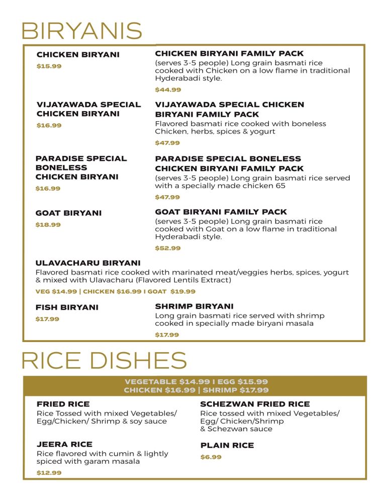 Long grain basmati rice served with Paneer cooked in specially made biryani masala(serves 3-5 people)