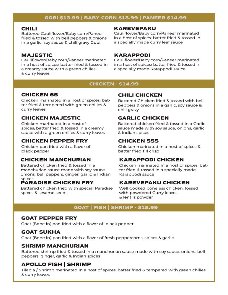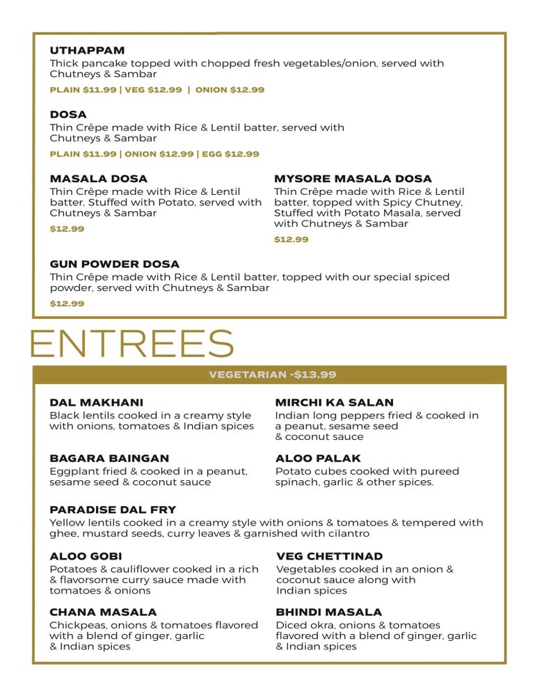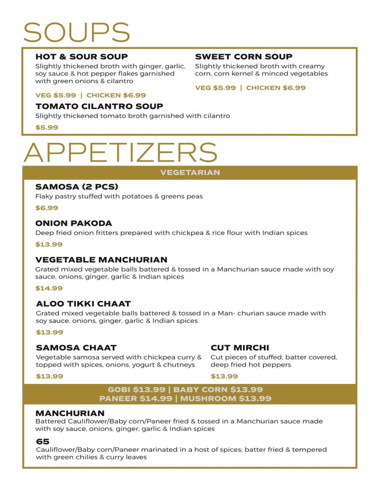 Paradise Indian Cuisine, located in Aurora, Ohio, offers a diverse menu with a range of Indian dishes. The restaurant is known for its exceptional soups like Veg HOT & SOUR SOUP and Chicken HOT & SOUR SOUP, along with flavorful dishes like Vegetable Biryani and Karappodi Paneer. Customers rave about the quality of the food and the friendly service. The atmosphere is cozy and inviting, making it a perfect spot for a memorable dining experience. With a focus on providing authentic Indian cuisine, Paradise Indian Cuisine stands out for its commitment to quality and taste. Don't miss out on trying their signature dishes like the Goat Vindaloo and Butter Chicken, paired with their delicious garlic naan. Experience the modern and classy ambiance while enjoying a quick and attentive service. Paradise Indian Cuisine is a must-visit for any Indian food enthusiast looking for a top-notch dining experience.